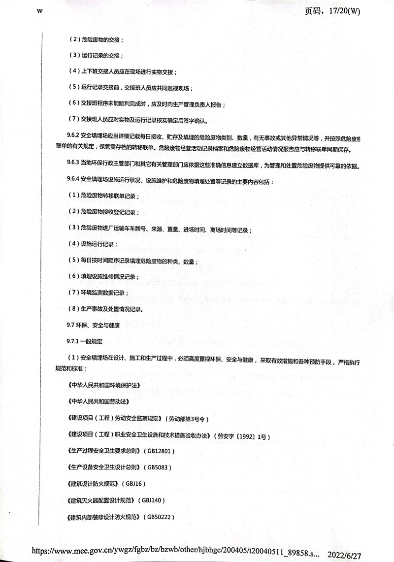 为贯彻《中华人民共和国环境保护法》和《中华人民共和国固体废物污染环境防治法》,规范危险废物安全填埋处置工程建防止危险废物填埋对环境的污染,保护环境,保障人体健康,制定本技术要求