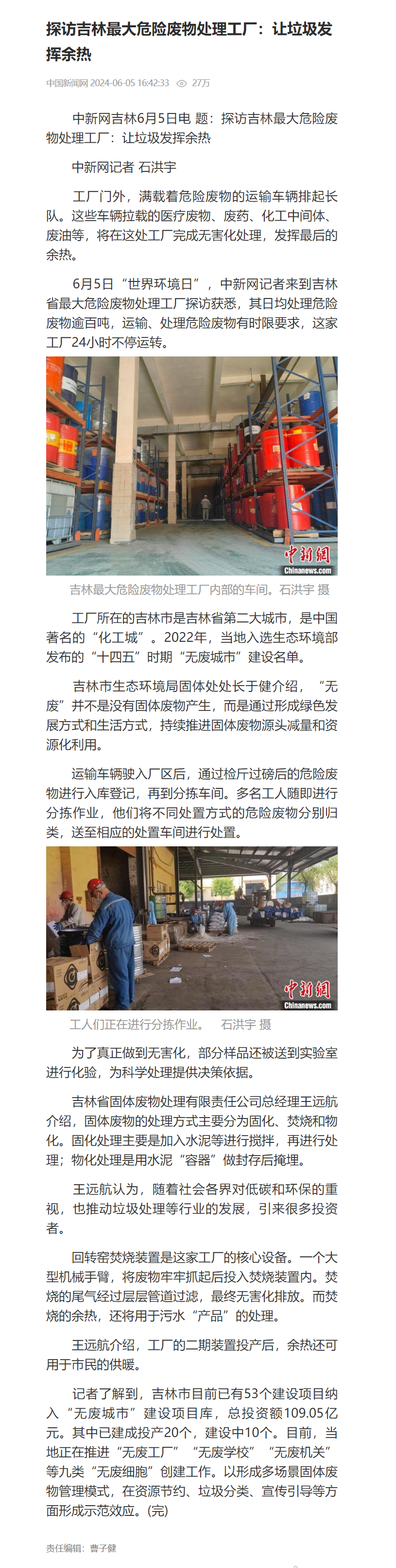 探访吉林最大危险废物处理工厂:让垃圾发挥余热